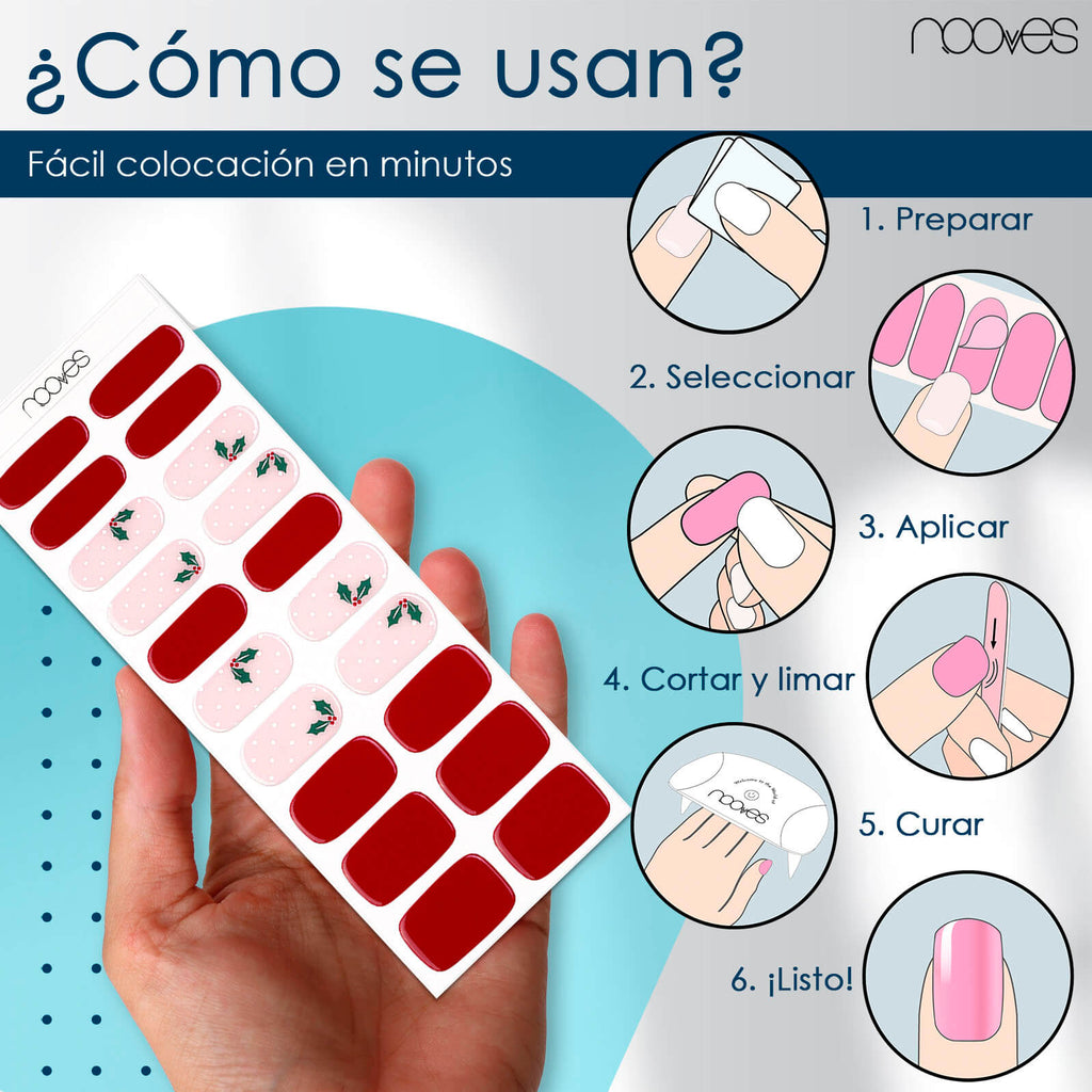 Nuestras láminas de uñas están hechas de auténtico gel curado al 60%, necesitan ser curadas para finalizar el proceso. Una vez curadas se quedan duras pero flexibles.
