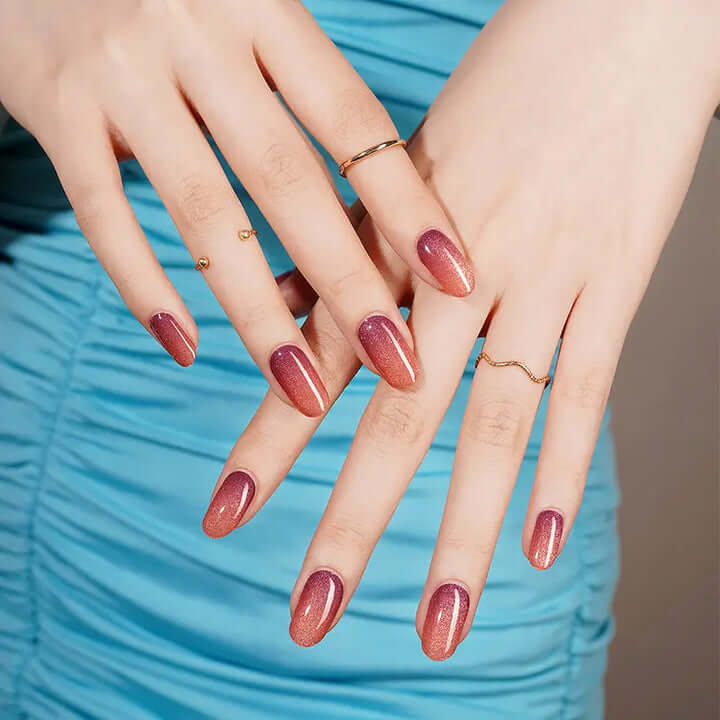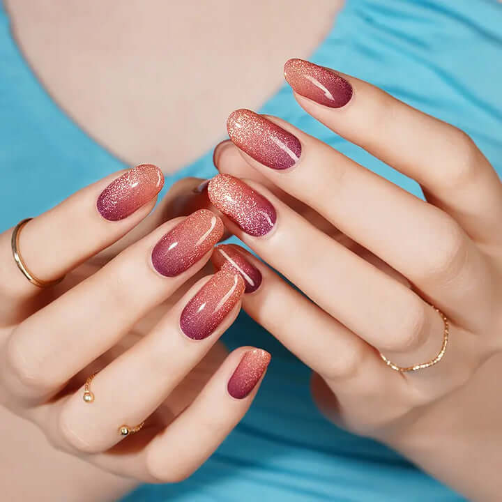 • 🌟 Estilo: Moderno, atrevido, con efecto glitter magnético y degradado Ombré