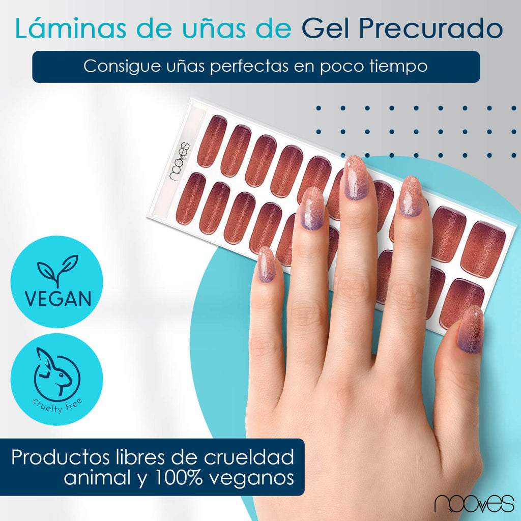 Estas láminas de uñas de gel semicuradas son la opción perfecta si buscas unas uñas de gel atrevidas y modernas con un acabado de salón. Se aplican fácilmente en casa y te garantizan un look profesional y una manicura duradera de hasta 14 días.