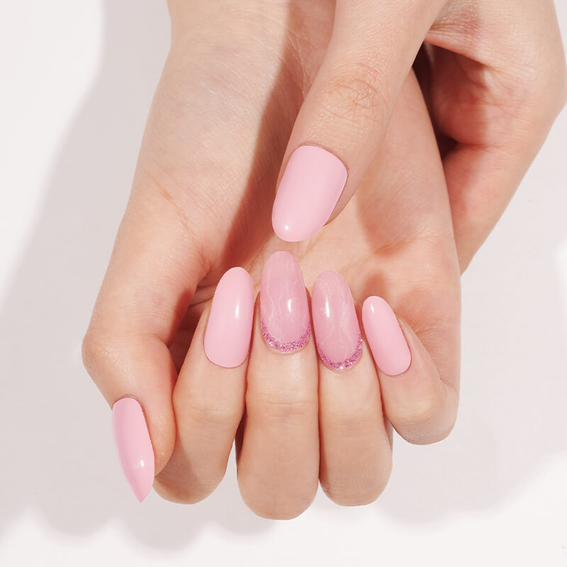 Consiga uma manicure elegante e luminosa em poucos minutos com Golden Kiss , um design que combina o rosa pastel com um delicado toque dourado na base. Perfeito para qualquer ocasião, do dia a dia a eventos especiais.
